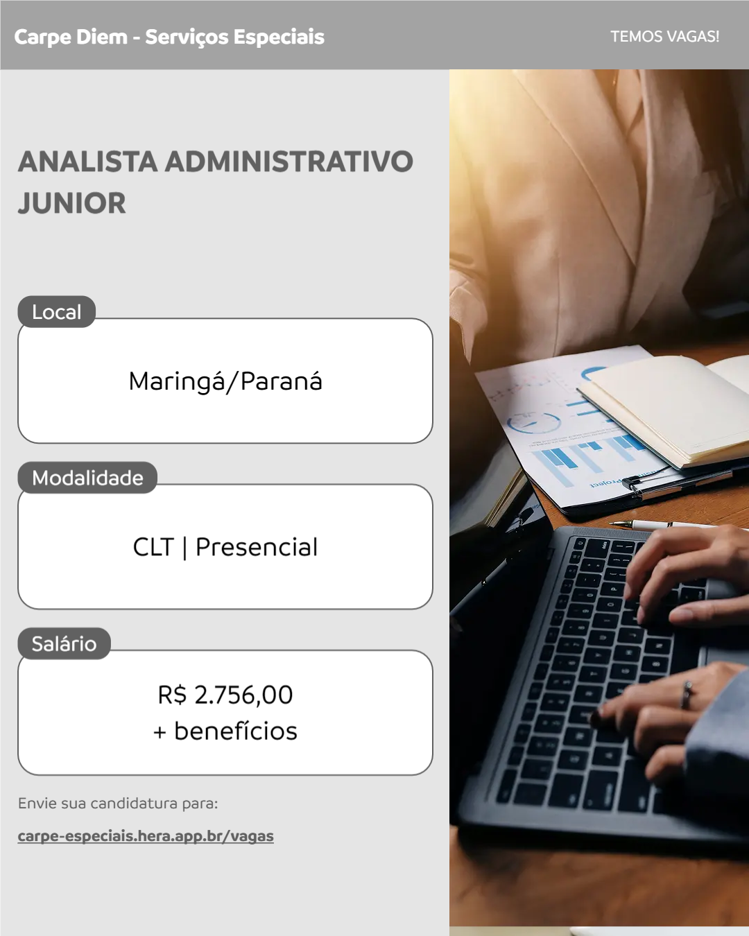 O Analista Administrativo Júnior é responsável pela análise e organização de documentos relevantes para a realização dos leilões, além de cadastrar no site leilões de qualquer nível de complexidade. Atua na leitura e análise de processos, identificando e separando os documentos essenciais e adapta as informações dos editais para uma linguagem comercial clara e acessível. Contribui de forma colaborativa com a equipe, garantindo a padronização, o cumprimento dos prazos estabelecidos e assegurando a clareza das informações divulgadas.
